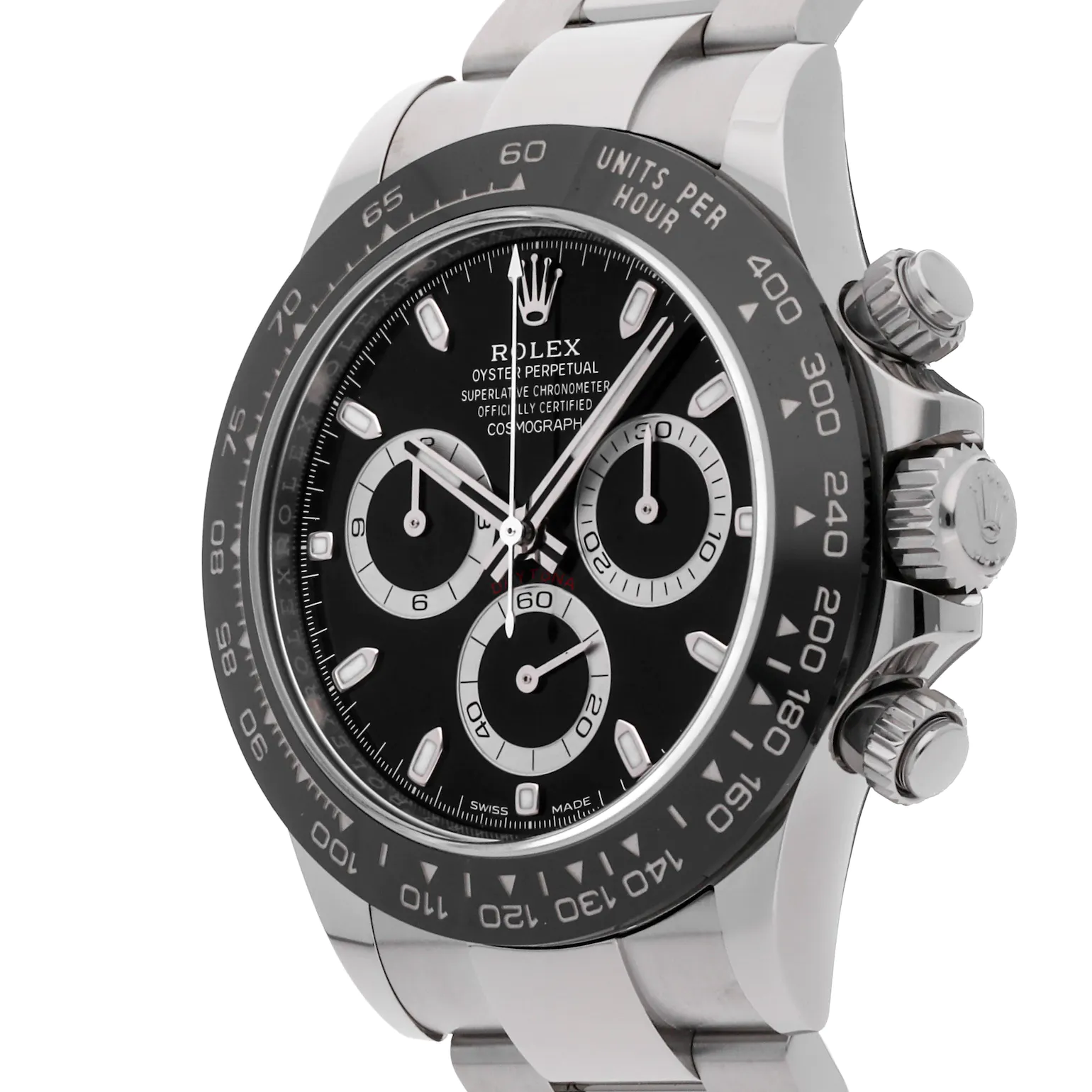 Featuring a Fixed Cerachrom Ceramic Bezel With Engraved Tachymetric Scale, Black Dial & Automatic 4130 Movement With Chronograph Function.